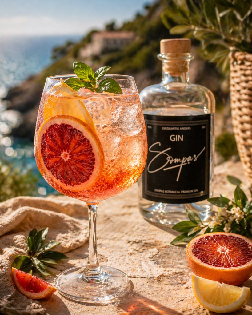 Sompas vereint klassische Wacholdernoten mit frischer Grapefruit, Blutorange, Zitrone, Ingwer und Minze. Das Ergebnis ist ein moderner Gin mit Charakter – fruchtig, frisch und angenehm besonders.